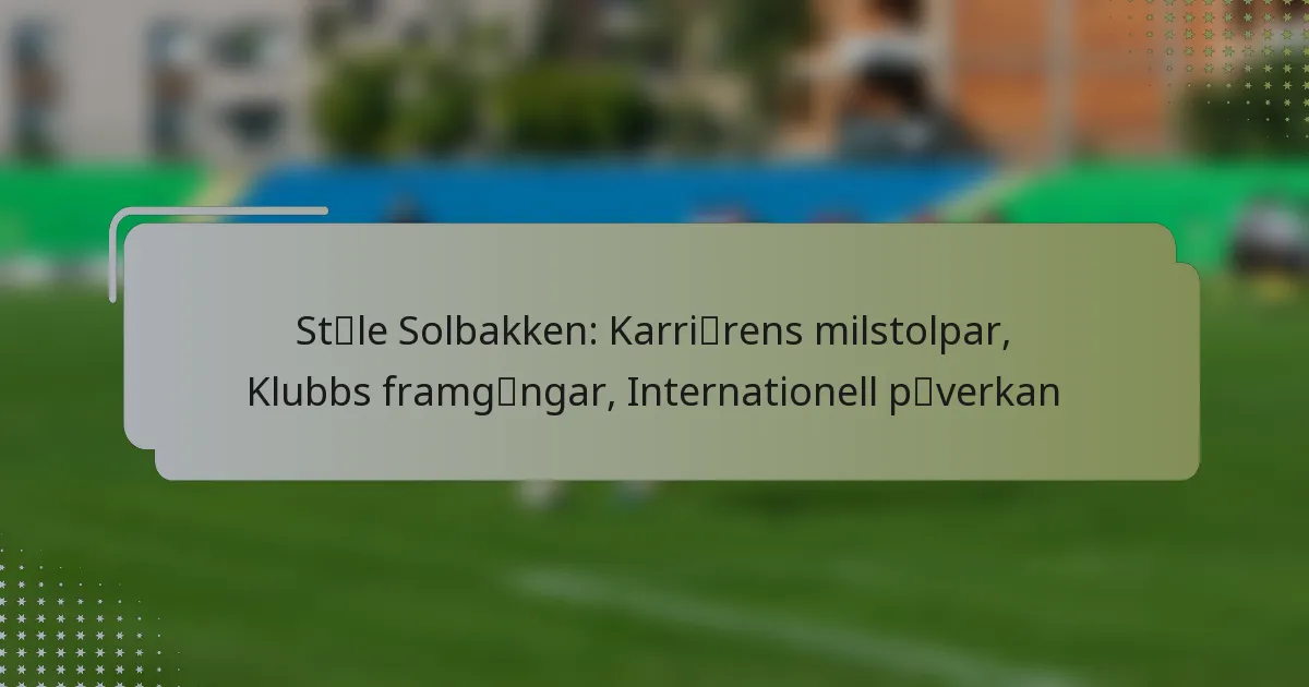 Ståle Solbakken har haft en framstående karriär både som spelare och tränare, präglad av betydande prestationer inom klubbfotboll och internationella tävlingar. Hans inflytande sträcker sig bortom troféer, där han formar klubbkultur och spelarutveckling samtidigt som han har gjort en märkbar påverkan på det norska landslaget och ungdomsutvecklingsinitiativ.